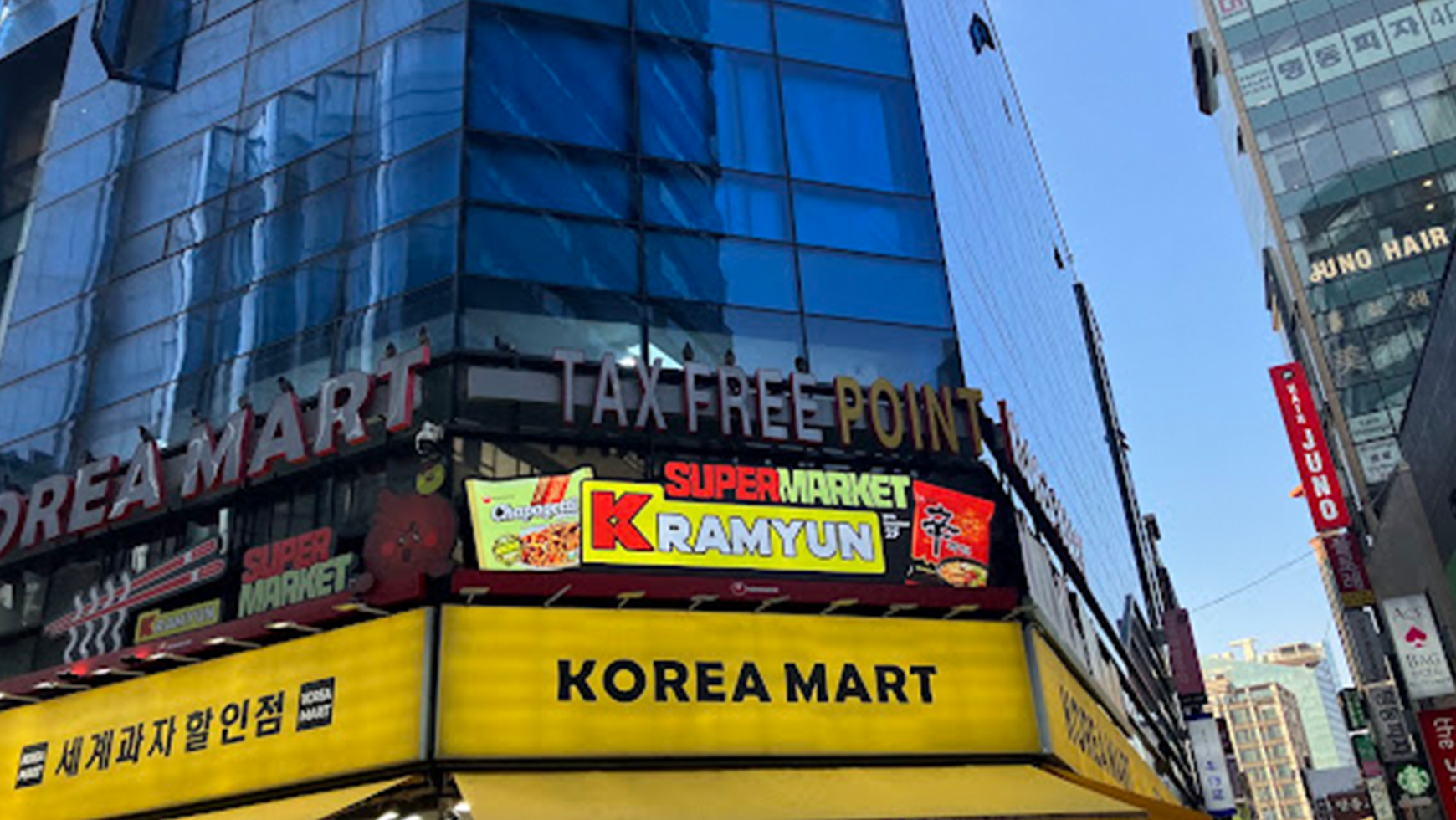 お腹がいっぱいになったら、お土産タイム。明洞駅のすぐ近くにあるコーリアマートで買い物です。