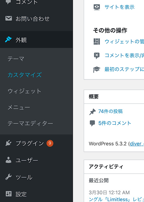 メニューから外観→カスタマイズ→サイト基本情報と選択していくと変更できます。