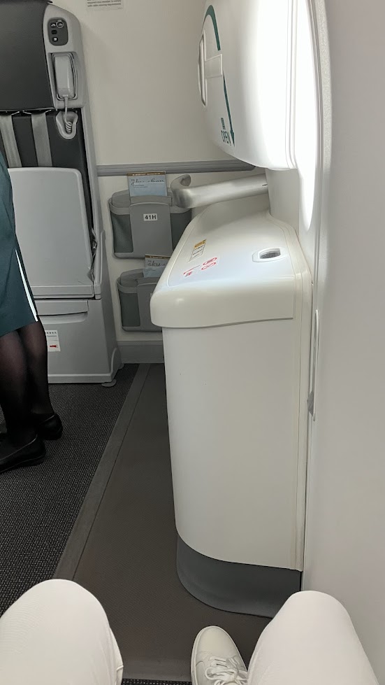 往復とも非常口指定の座席で、行きはこんな感じ。